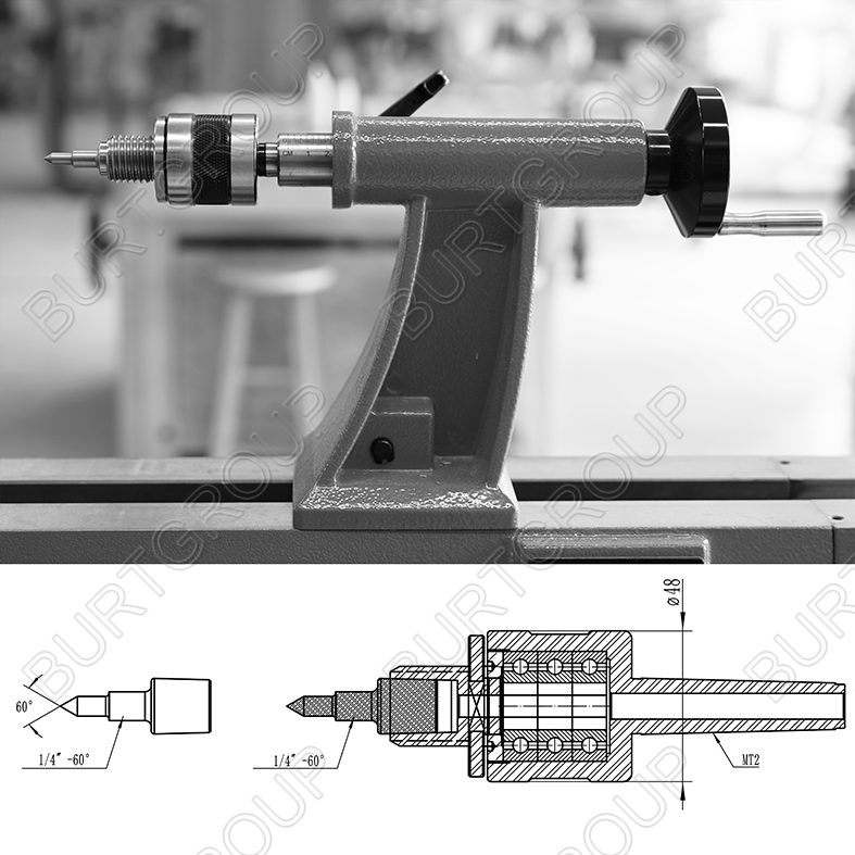 Includes five centers: 2” 60° big cone center, 1-1/5”cup point center, 2-1/5” big cup center, two fine center points, and one knock out rod, one wrench.