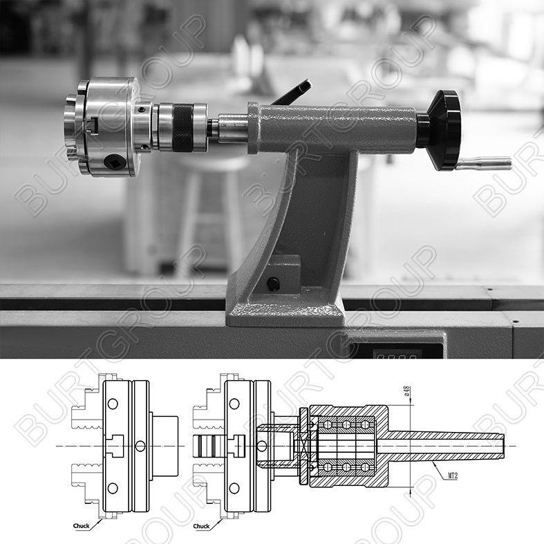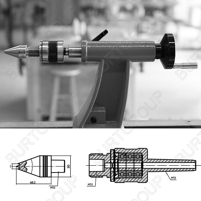 Convert tailstock from dead to live and it will accept threaded lathe tool accessories or other MT2 centers.