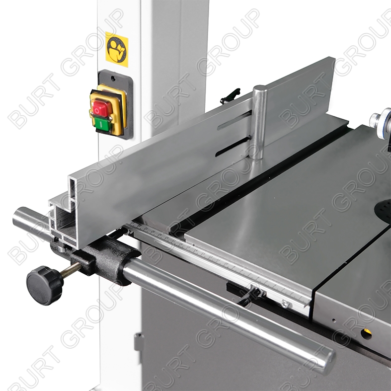 HBS350PN bandsaw is for the busy workshop where power and generous capacity are required but budget and space do not allow a bigger machine.The bandwheels are cast iron and dynamically balanced with precision ground, crowned rubber tyres usually only found on much more expensive industrial machines-the flywheel effect of the castiron wheels improves cutting performance and speeds.The rip fence is the strongest and most industrial in its category with achromed fence and the mount machined from a single piece of castiron. The extrusion itself is a heavy section to provide rigidity andaccuracy.