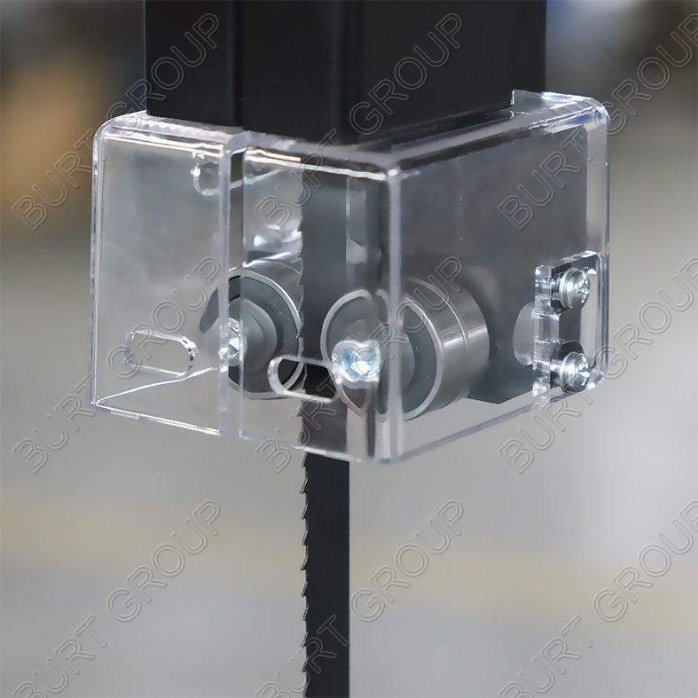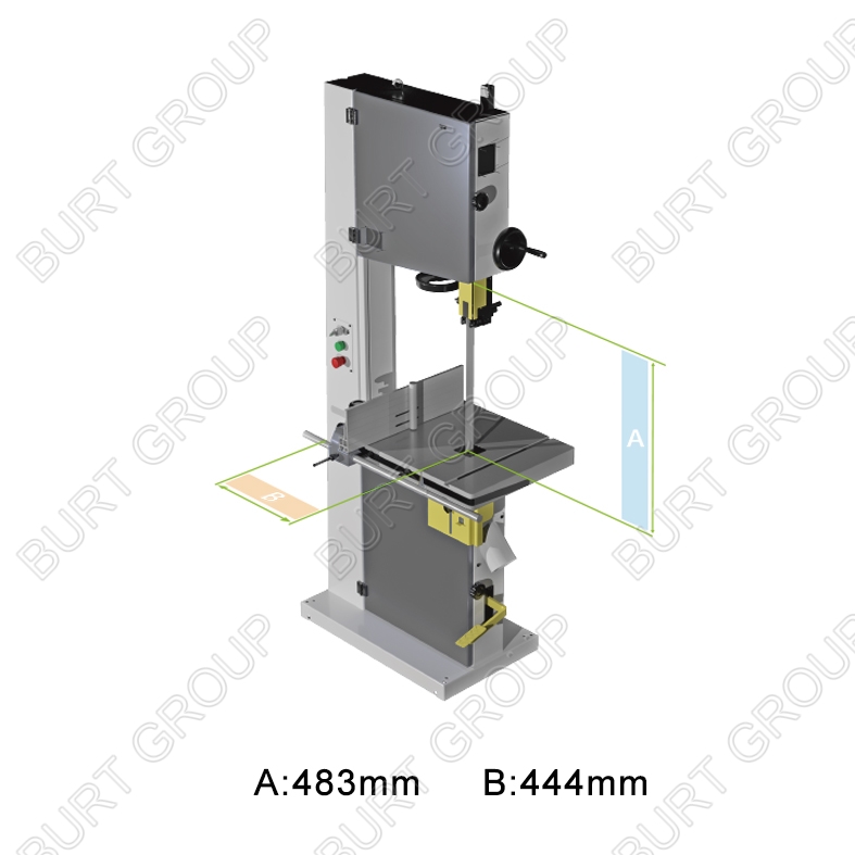 HBS450PN bandsaw has one of the most powerful motors in the line, 4HP with 483mm of re-saw capacity, which makes it ideal for woodworkers doing a lot of heavy re-saw work. Professional features include spring loaded tool-less guide system, massive cast iron table with quick adjust trunnion system, substantial quick adjust 6” tall rip fence system, key activated safety on/off switch, micro safety on/off switch activated door& foot brake. Under the top door blade tension release levers with blade tension hand wheels are easy to access from the front of the saw.