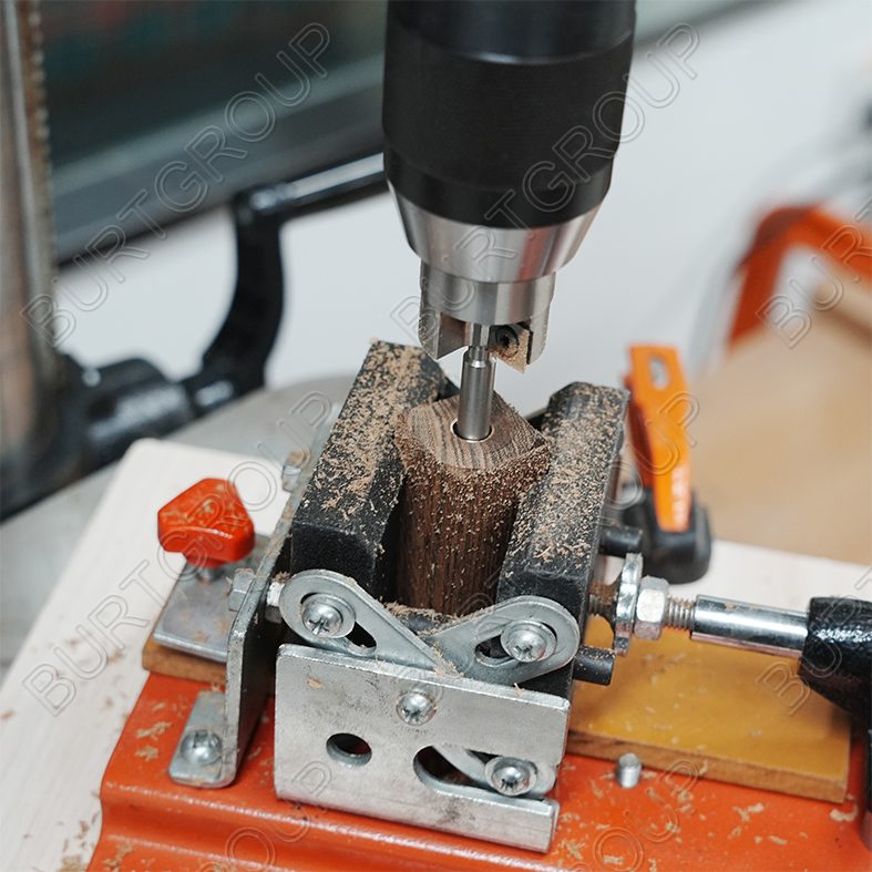 4. Cutting shafts will mount into a drill chuck or lathe chuck, the shaft will clean and remove any excess glue from the tubes. Cleanly remove excess glue from your turned pen tube and blank.