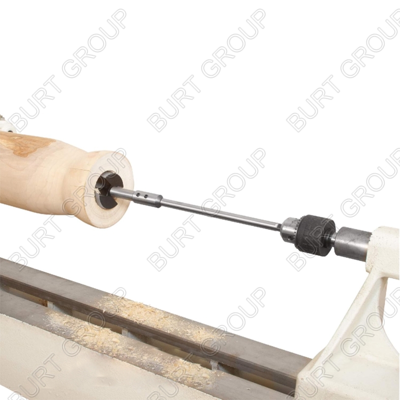 * Drilling with forstner bits to achieve a flat bottom hole or to start a deep hole turning project like on a larger vase or vessel is essentially impossible with a standard length forstner bit. To remedy this issue we have developed an extra long, heavy duty steel extension that allows you to secure a 3/8 inch shank forstner bit into the end collet.