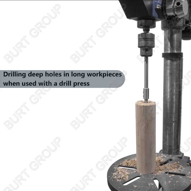 * The forstner bit extension gives you additional 8-1/2 inches of reach to bore deeper into your projects. This will help you create larger diameter starter holes or help when you need to drill in just a little further than the standard bit length will allow. The extension can be used with forstner bits on drill presses, lathes with a drill chuck installed or with a power drill.