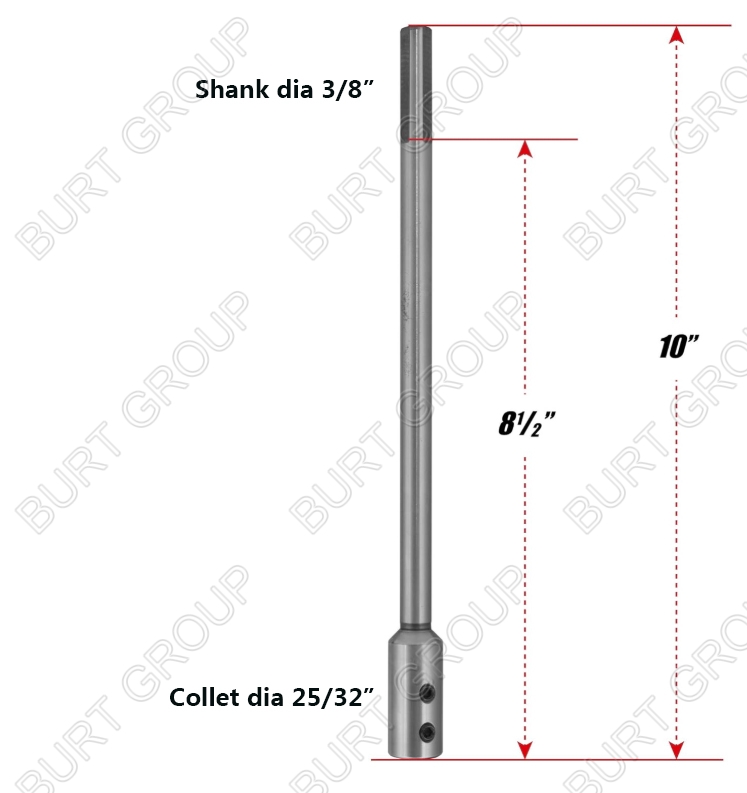 * The collet outside diameter is 25/32 inch without the set screws protruding outward. The reason this is important is that as we mentioned earlier, some bits may have slightly different shank sizes. This means the set screws may protrude outwardly from the collet. The minimum size hole this extension will allow you to drill is 13/16 inch.