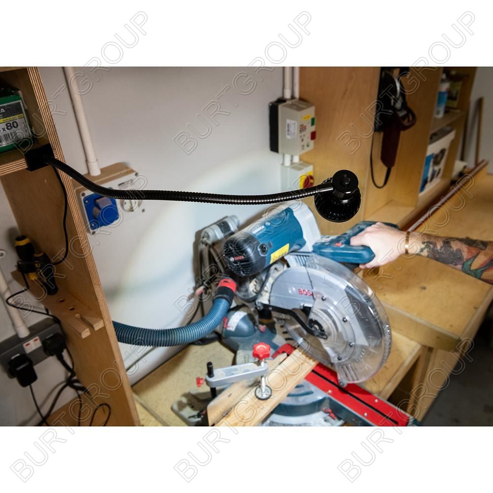 Designed to be used with machinery, it can be securely bolted onto machines. It has a flexible 10 x 420mm swan neck making it fully adjustable to suit your desired location. It has an all metal construction. Due to the low wattage LED bulb, this light generates limited heat.