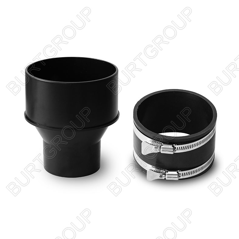 Two stainless steel hose clamps help provide a tight seal on the 4 inch end and keep the reducer from falling out. These clamps fit neatly into the slots around the coupler so there is no slipping when tightened. Each clamp is equipped with a turnkey mechanism to make tightening and loosening the clamp super easy.